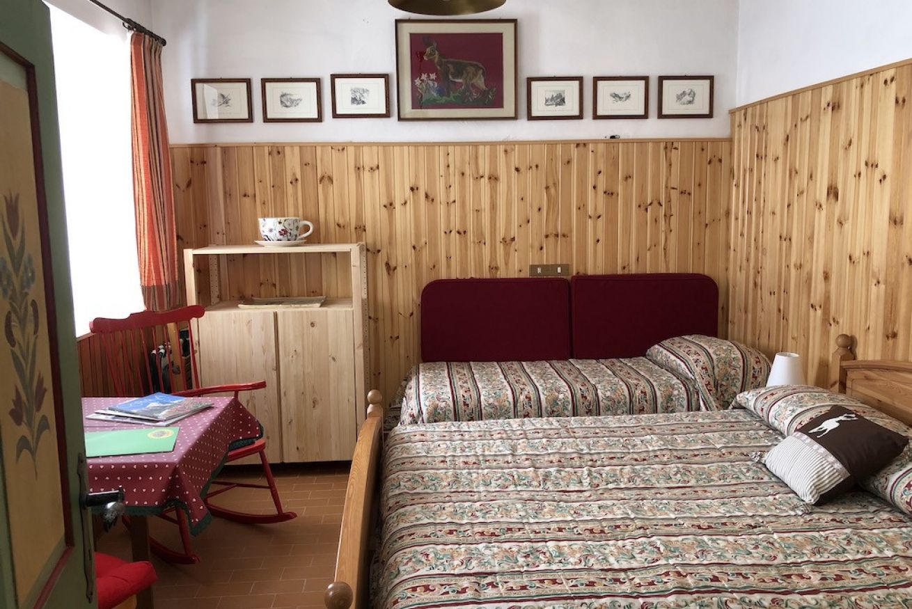 Camera tripla con Letto matrimoniale ed un Letto singolo, esposta a sud. Piano Terra. Bagno privato ad uso esclusivo. Più due camere comunicanti con ingresso unico: una matrimoniale ed una con due letti singoli, primo piano. Esposta a sud con tre finestre panoramiche. Bagno privato ad uso esclusivo. Animali ammessi solo in Camera 1 (solo cani di piccola taglia, non più di uno).